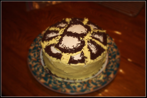 When I walked into the kitchen last week and saw my daughter baking a cake, I was like one who dreams. Had she been bungee jumping from the ceiling I would not have batted a Maybelline encrusted eye lash; but here she was mixing and measuring–and I knew something had to be up, something was going down. It was a Boston (shudder) birthday cake, a surprise for her good friend. A gang of them walk over from the high school every Wednesday for lunch and she was getting it ready for the next day.