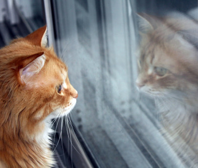 Every morning I get up and let the dog out. Then I feed the cats. Then Mia sits at the patio door looking out at the bushes behind the back yard. She wishes she could be out there. But she’s resolved to being in here.