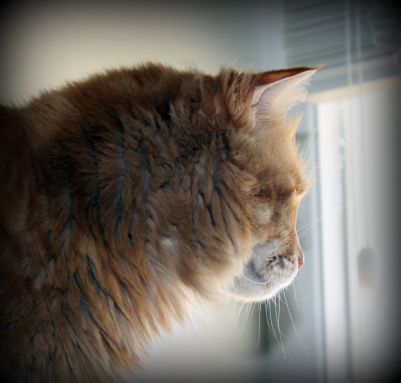 And when we moved a year and a half ago, I had to drug her to get her into the carrier. She was terrified for the first little while, but thankfully, has never ventured outside. She runs away when I open doors, but spends most of her time looking out of windows. I wonder what she’s thinking.